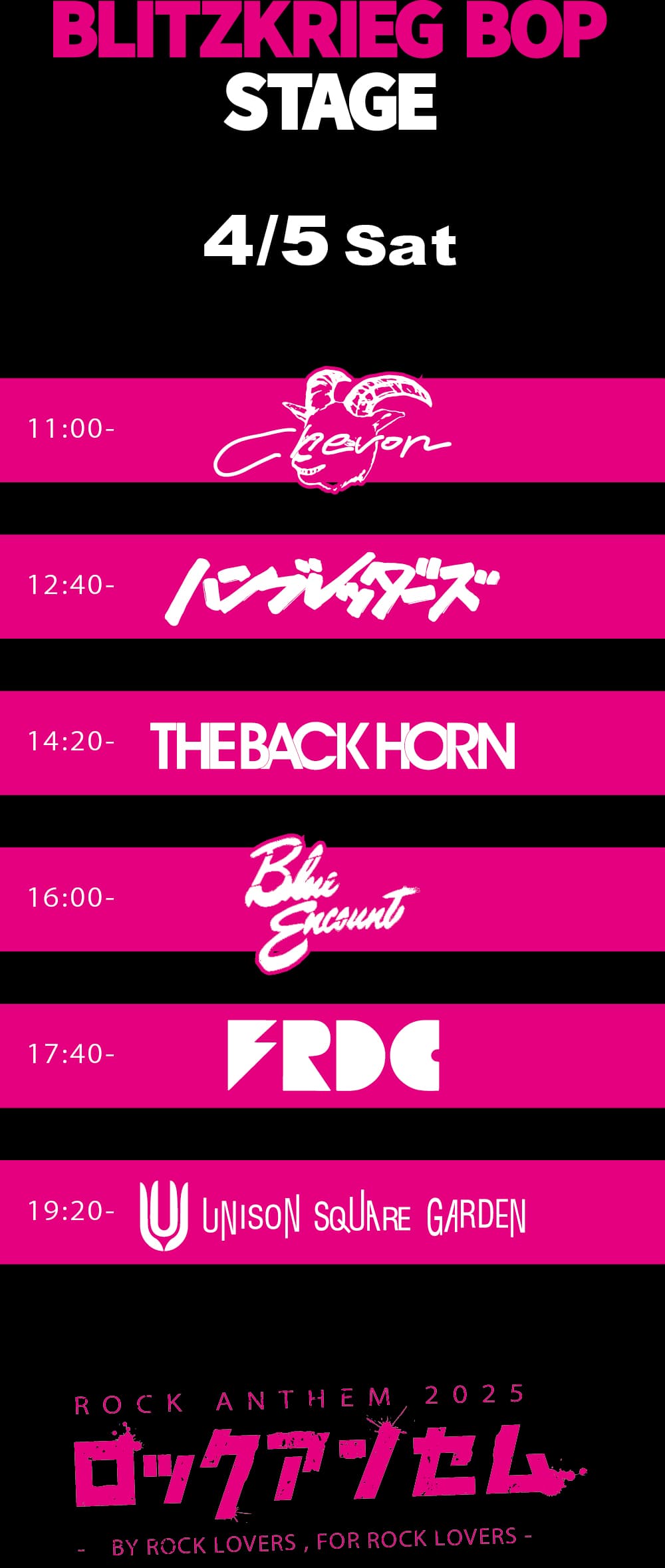 いよいよ「ロックアンセム」開催まで3ヶ月を切りましたが、出演アーティストの追加発表をさせていただきます。第2弾では8組の追加アーティストが発表され、DAY1、DAY2ともに9組ずつラインナップが揃い、DAY1、DAY2のカラーがだんだんと見えてきたと思います!今回DAY1は打首獄門同好会、四星球、レキシが追加されたことにより、エンタメ色の濃いライブが楽しめるメンツになってきました。この日は音源では伝わらない魅力溢れるパフォーマンスが満載となります。この3組に限らずですが、とにかく会場でライブを体験して欲しいバンドばかりです!そして個人的な思いとしてはUNISON SQUARE GARDENの出演が決まったことが、めちゃくちゃ嬉しいです!どのバンドも出てくれることは当たり前ではないし、出たくてもスケジュールの都合や、色々な事情で出られなかったバンドもたくさんいます。そんな中でユニゾンはこれまで自分の主催フェスに何度かオファーさせてもらいましたが、タイミングが合わず出演が叶っていませんでした。以前、担当していた「Love music」という番組には何度も出演してもらったし、何度もライブを観てきましたが、やっぱり圧倒的にライブが格好良いバンドなので、どうしてもライブを観て欲しく…しつこくオファーし続けた結果、ついに念願叶って出演してもらいます!!
