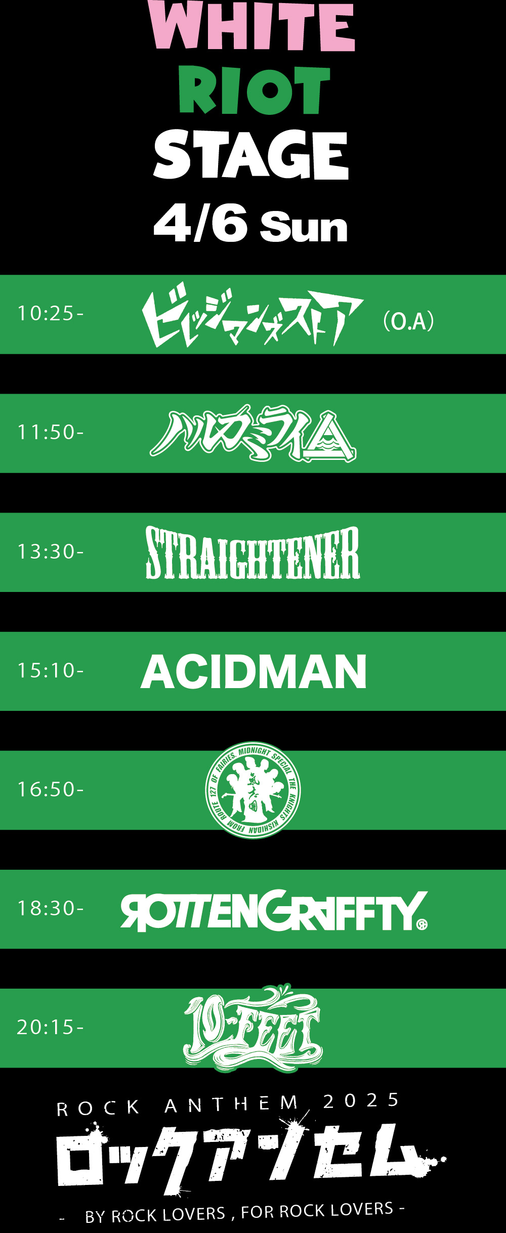 そして開催発表時にもコメントしましたが、「ロックアンセム」というイベントはロックが好きなスタッフが作り、ロック好きな人たちが集まる「ロック純度」の高いロックフェスです。最新の楽曲や話題の楽曲を、ネットやスマホで観たり、聴いたりすることが出来るようになり、どんどん音楽が身近なものになっていますが、ライブ会場で歌声や演奏を聴いたり、生のパフォーマンスを観ないと、その楽曲やアーティストの魅力が伝わってこないことも多々あります。実際に僕はライブハウスや、音楽フェスで人生を捧げるほど好きになるロックバンドとの出会いをこれまで何度も繰り返してきました。一人でも多くの音楽好きな人がライブに足を運び、ロックアンセムを聴いて、人生が変わるような経験をして欲しい、という思いを込めて、このイベントを企画しました。 またコロナ禍を経て、フェスの来場者がかなり入れ替わったといわれています。長年にわたりロックフェスを支え続けてきた30代、40代のお客さんが減り、初めてフェスに参加する10代、20代のお客さんが年々増えているようです。若い人がどんどんフェスに来るということは素晴らしいことですが、その一方で30代、40代、それ以上のロック好きなお客さんが、ロックフェスで年齢関係なく「ロックキッズ」になって欲しいという思いが強いです。なので「ロックアンセム」はフェスから遠ざかってきた世代のロックファンが再びフェスに足を運びたくなるようなバンドを中心に声をかけました。DAY1は15周年、20周年のバンドが多く、DAY2は25年以上のキャリア(スカパラに至っては35周年!)のバンドが集まってくれました!一言でいうと「超ストロングスタイルのロックフェス」だと思います。このラインナップを見て「懐古主義」のイベントだと勘違いする方もいるのですが、どのバンドも現在進行形で活動していて、ライブを観ても今が一番格好良いのでは?というバンドばかりです!全アーティストがそれぞれのロックアンセムで、ロックの魅力、フェスの魅力を伝えてくれます!その瞬間に立ち会った10代、20代のお客さんも間違いなく、その魅力にハマることは違いありません!そして30代、40代のお客さんだと、小さなお子さんがいる方も多いでしょう。子供を連れてロックフェスに行くのって大丈夫?その不安にも応えられるよう「ファミリーチケット」購入者のみが入れる「ファミリーエリア」や、別空間に子供が遊べる「キッズエリア」も作ります。大人がロックキッズになれる場所であり、子供を連れて家族で楽しめる、そんなロックフェスを目指します。